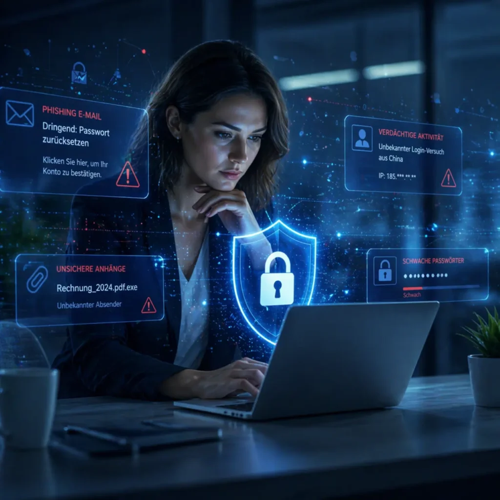 Gerade Phishing-Angriffe, Social Engineering oder manipulierte Anhänge sind heute so professionell gestaltet, dass sie auf den ersten Blick kaum zu erkennen sind. Ohne entsprechendes Wissen und Bewusstsein können selbst erfahrene Mitarbeitende zum Risiko werden.